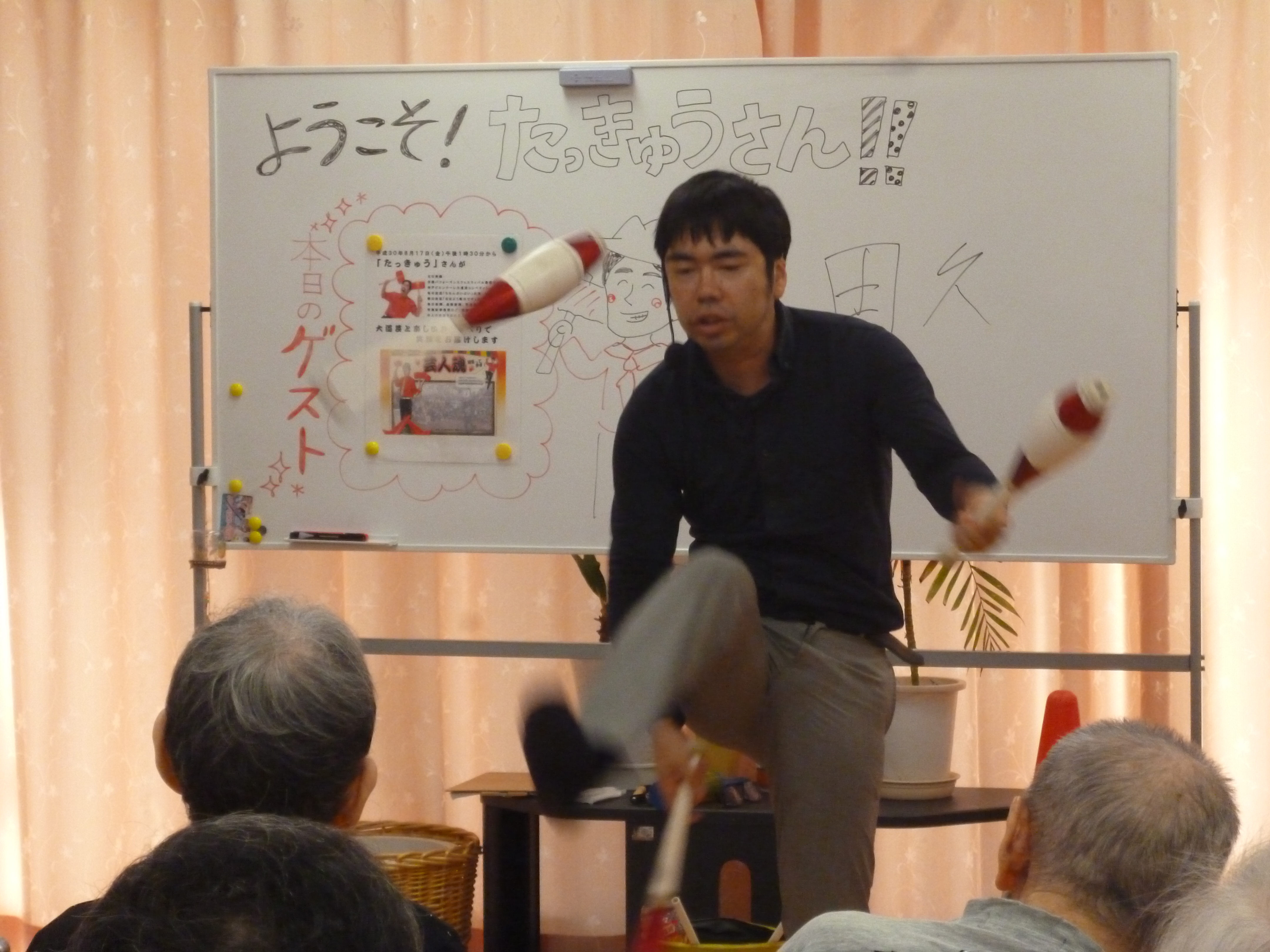 さくらいふ丸新町では“たっきゅう”さんにお越しいただいて、大道芸を披露していただきました。