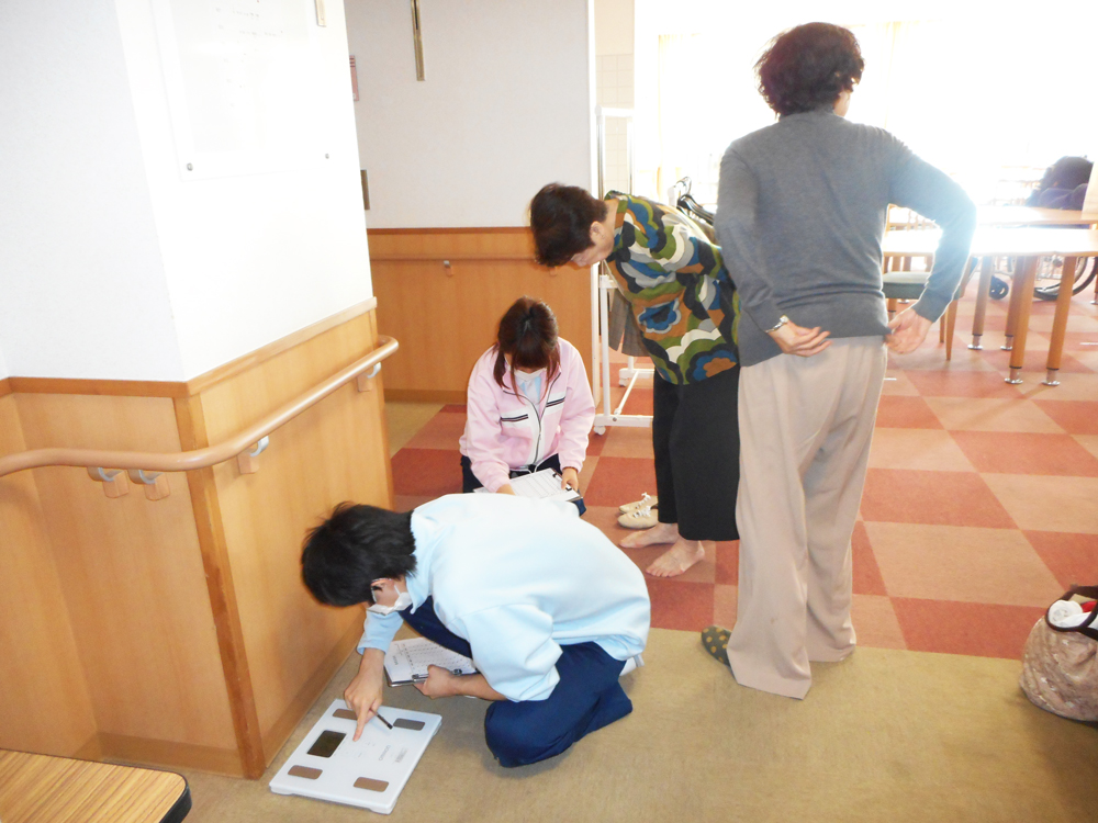 まず健康チェック。体重と体脂肪率を計測。