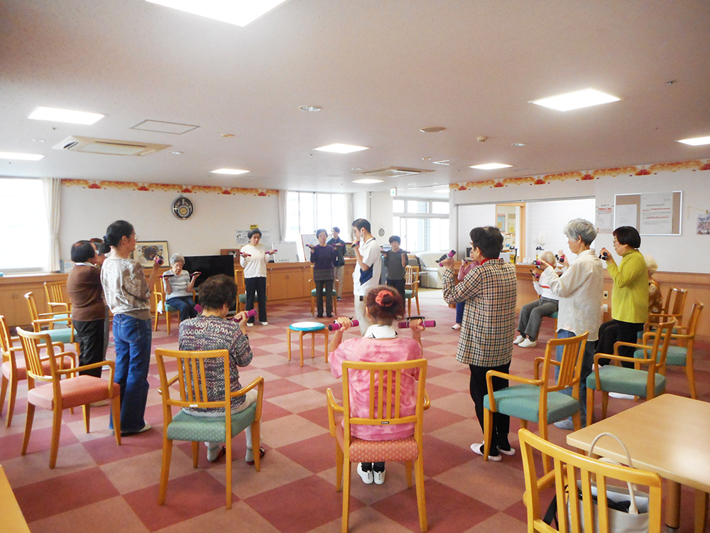 『特別養護老人ホーム 東桜の里』では地域の65歳以上のお元気な高齢者の方に月2回、体操と歓談を交えたコミュニティ活動を行っています。