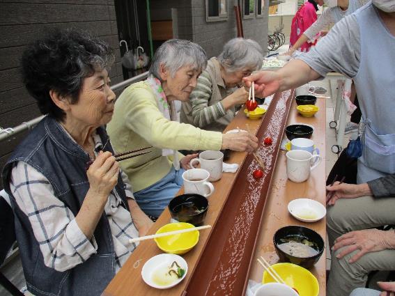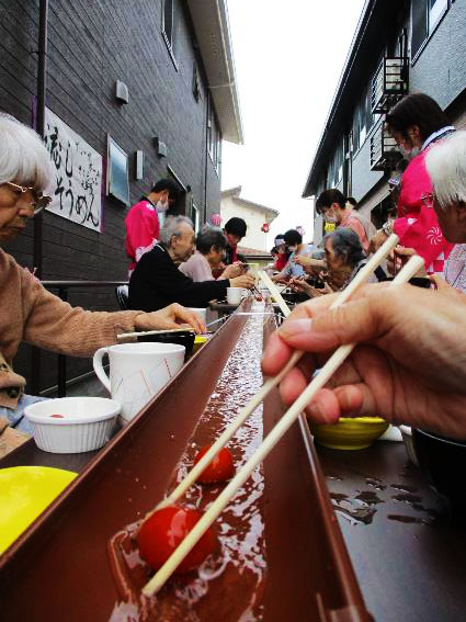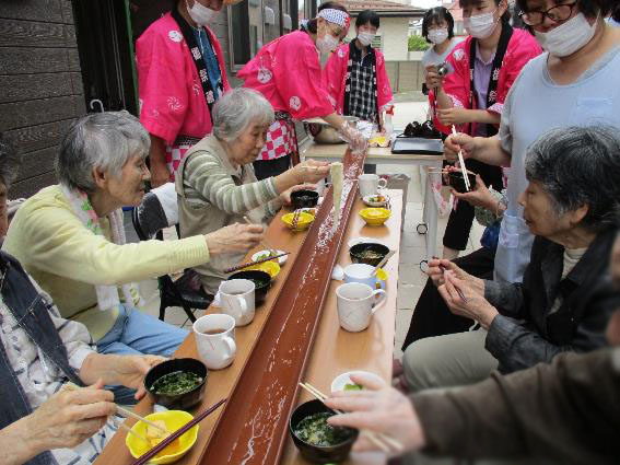 令和3年7月27日、「グル-プホ-ム さくらいふ六軒屋」で流しそうめんのイベントを行いました。