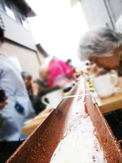 皆様揃ったところで、そうめん流しスタート!!