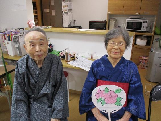 ちなみに皆様がお持ちの団扇はご利用者様ご自身で作られたお手製なのです。