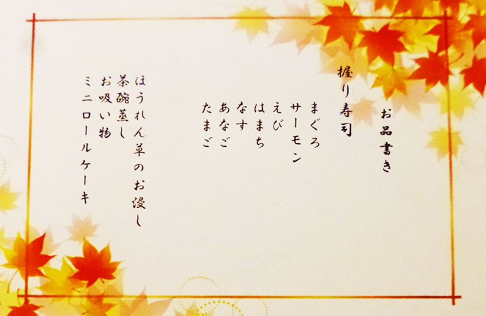 こちらがお品書き。
