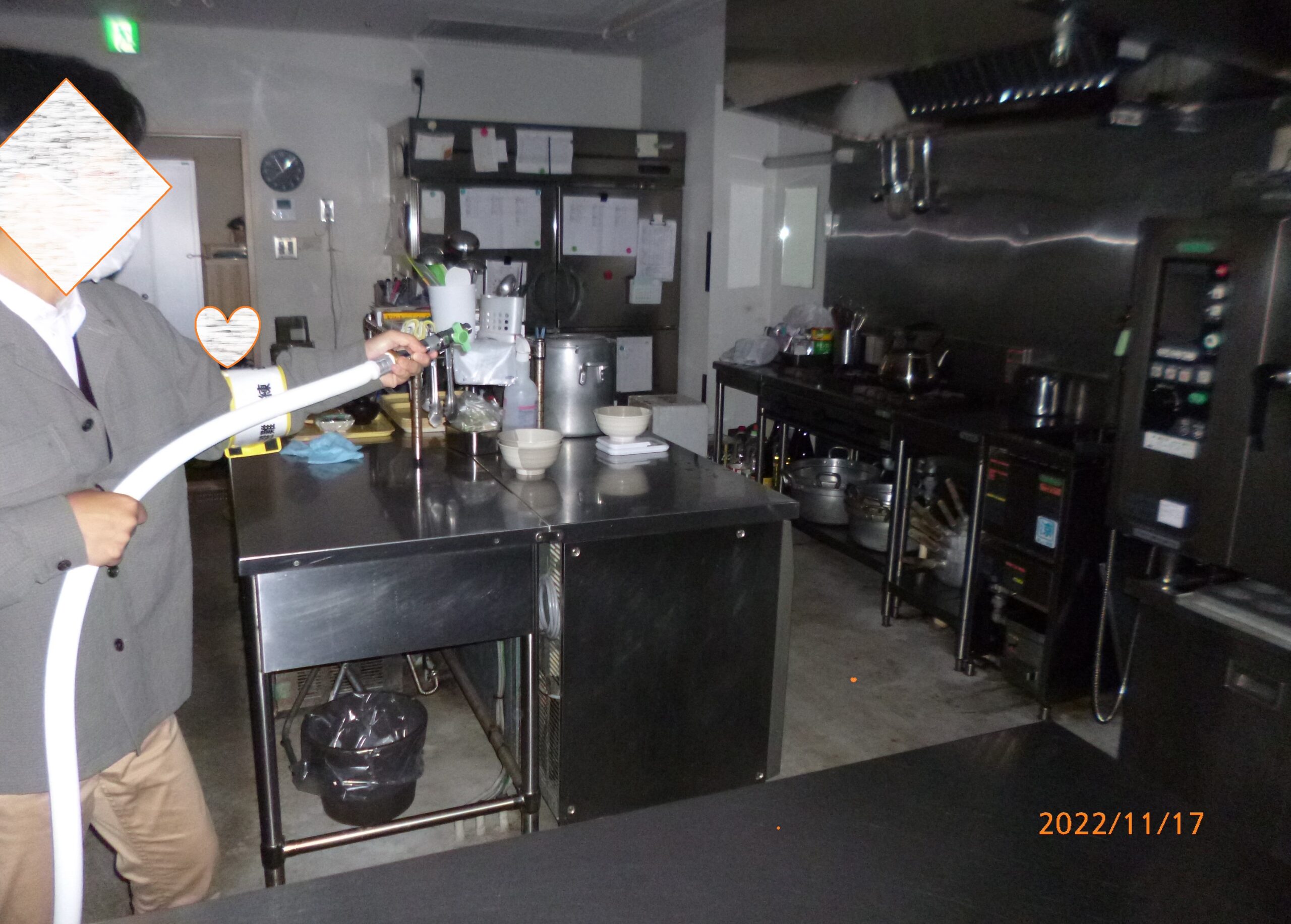 万が一の出火に備え消防ホースが厨房まで確実に届く事を再確認しました。