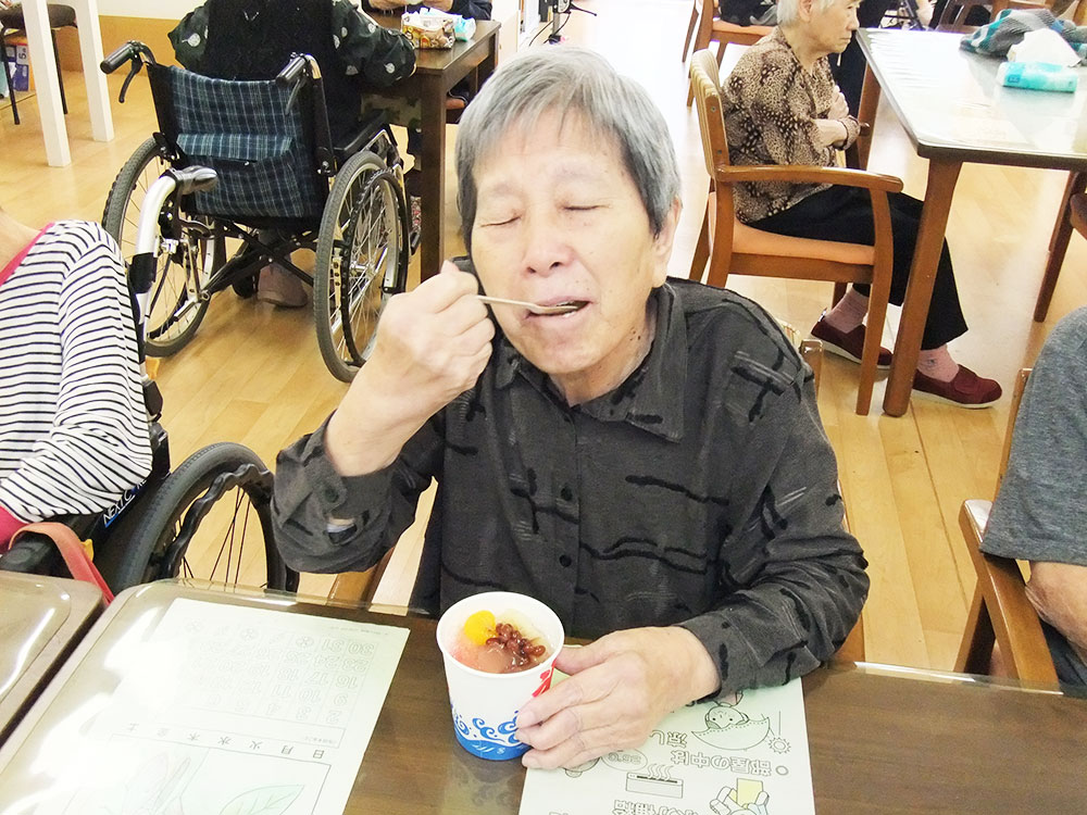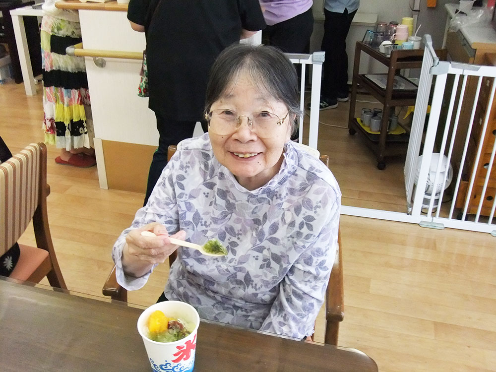 かき氷で口の中がさっぱり爽やか、皆様も思わず笑顔になられ「昔から夏はかき氷が楽しみだった」と懐かしむご利用者様の声も聞かれました。