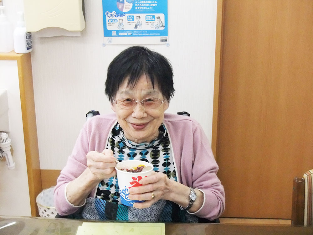 冷たいものが苦手なご利用者様も、あんみつのようにして召し上がって頂きました。